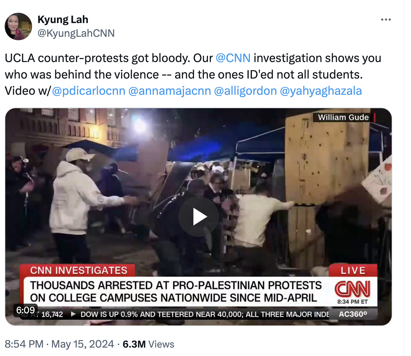 It only took a couple of weeks but glad to see CNN finally covering the right wing fascist violence at UCLA.