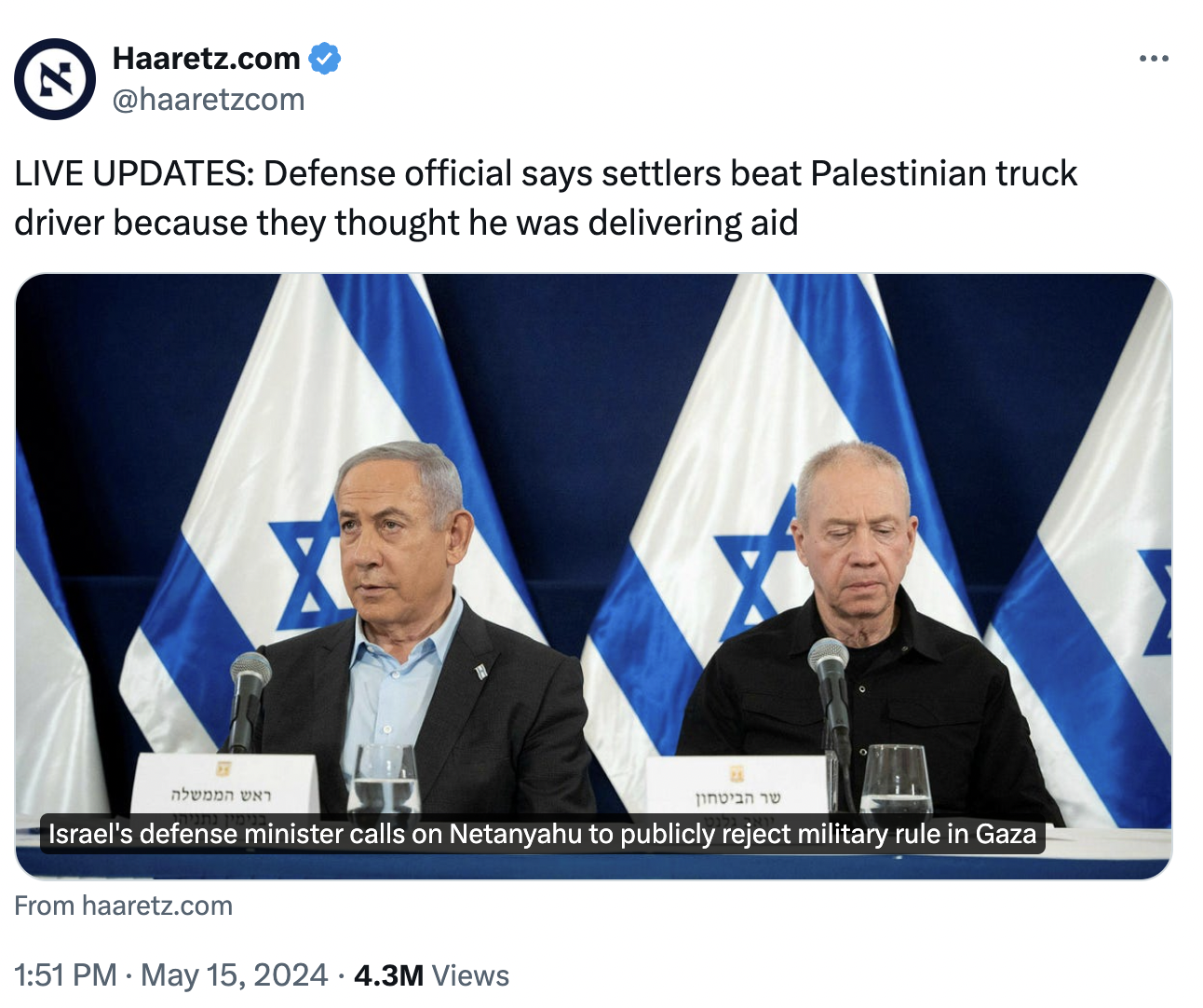 Then I watched a TikTok of some Israeli kids protesting their own Palestinian (but Israeli citizen) teacher because she had attended a Nakba Day march and in the video they're laughing and chanting and jumping around like you would expect excited kids to do after winning a soccer game but instead they're chanting "may your village burn."