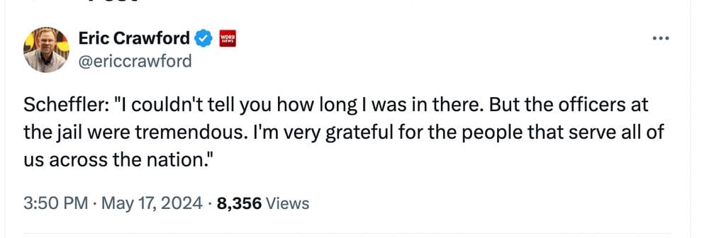 Scottie Scheffler, the number one golfer in the world, was arrested by Louisville Metro Police for "striking" a police officer with his car while attempting to get to a golf tournament which briefly put many of us in the awkward position of deciding if we have to side with a golfer or the cops. (Always follow your gut for the obvious answer there). Looks like the guy loves the cops himself though so that settles that.
