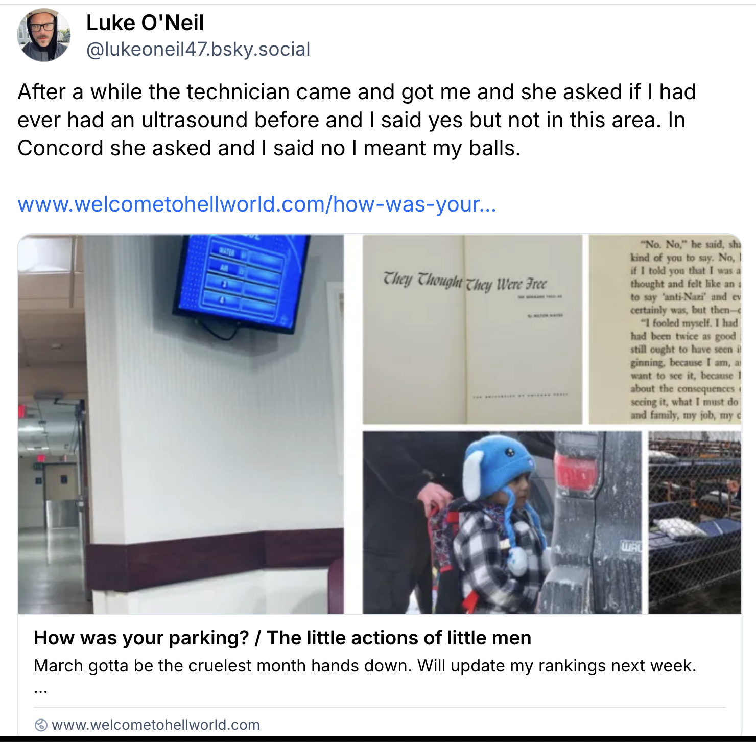 Happy tax season! As an independent writer I am preparing to receive my annual fucking. So if you ever wanted to pick a time to subscribe to help your old pal Luke pay off the Tax Man it would be greatly appreciated. Here's one about how good it feels paying for all the shit we do as a country!