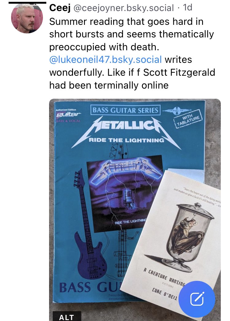Thanks to Ceej for this beautiful tableau. I highly recommend reading the Ride the Lightning bass tabs before starting my book though or you’ll miss key plot elements.