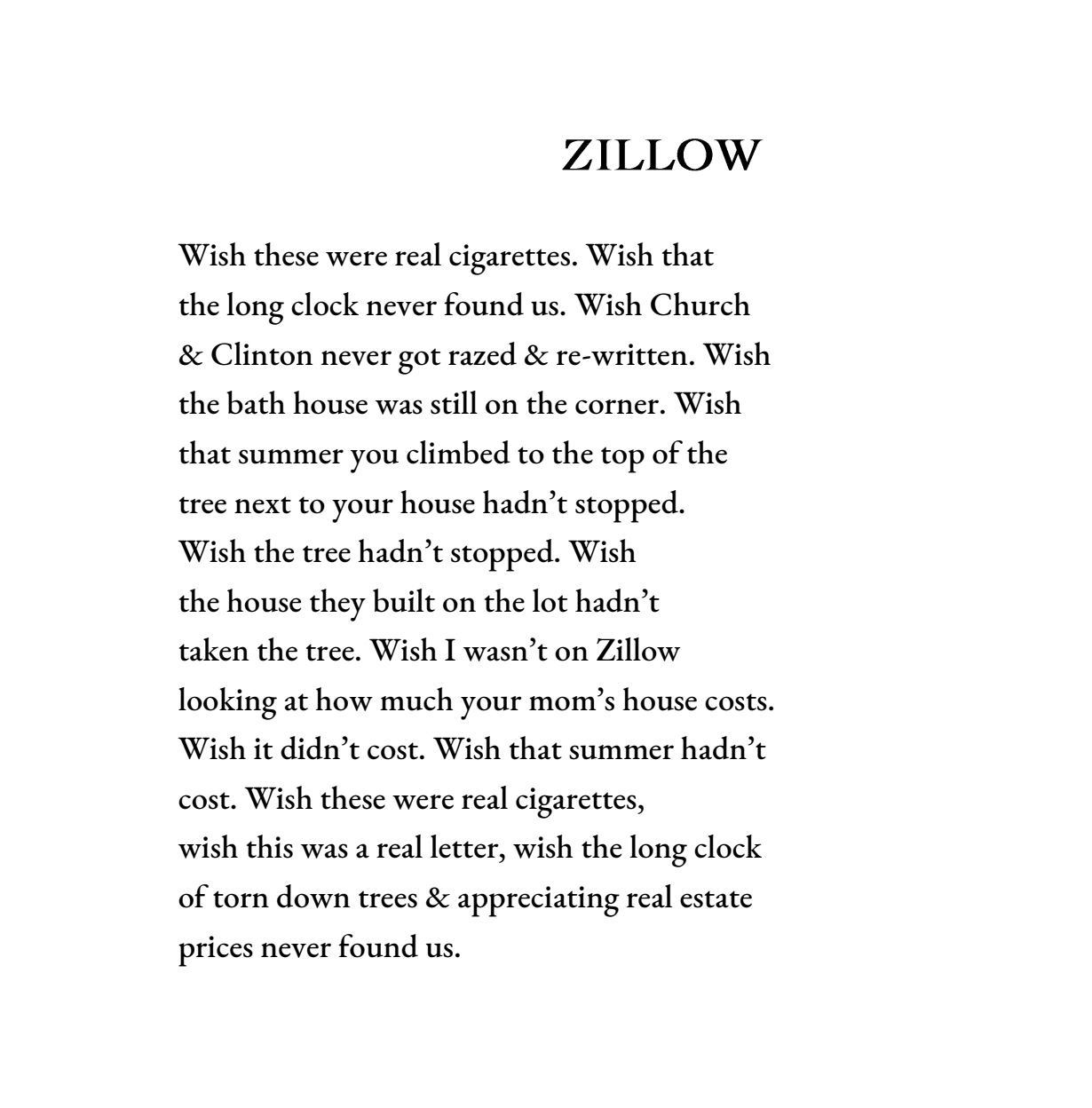 Here are a couple of my favorites from the book. (Zillow originally appeared in Prolit magazine.)