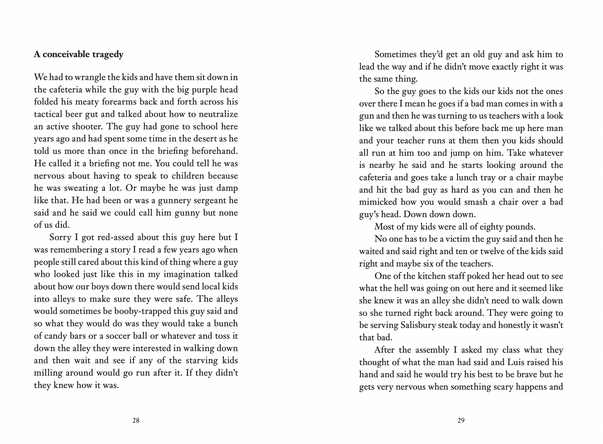 On the matter of school shootings here's a story from my new book that I've shared in here before but many of you will still not have read so feel free to remedy that presently.