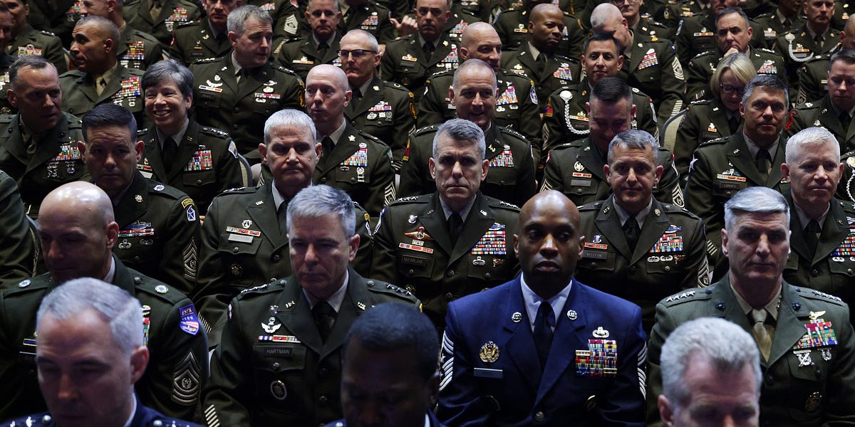 Earlier today, America’s Drunken Stepdad of War Pete Hegseth gathered all the top leadership of the U.S. military to tell them no more Blacks, gay stuff, or beardos will be allowed from now on, not in his America’s Department of Warfighting Lethality. Not even in the Navy, perhaps.