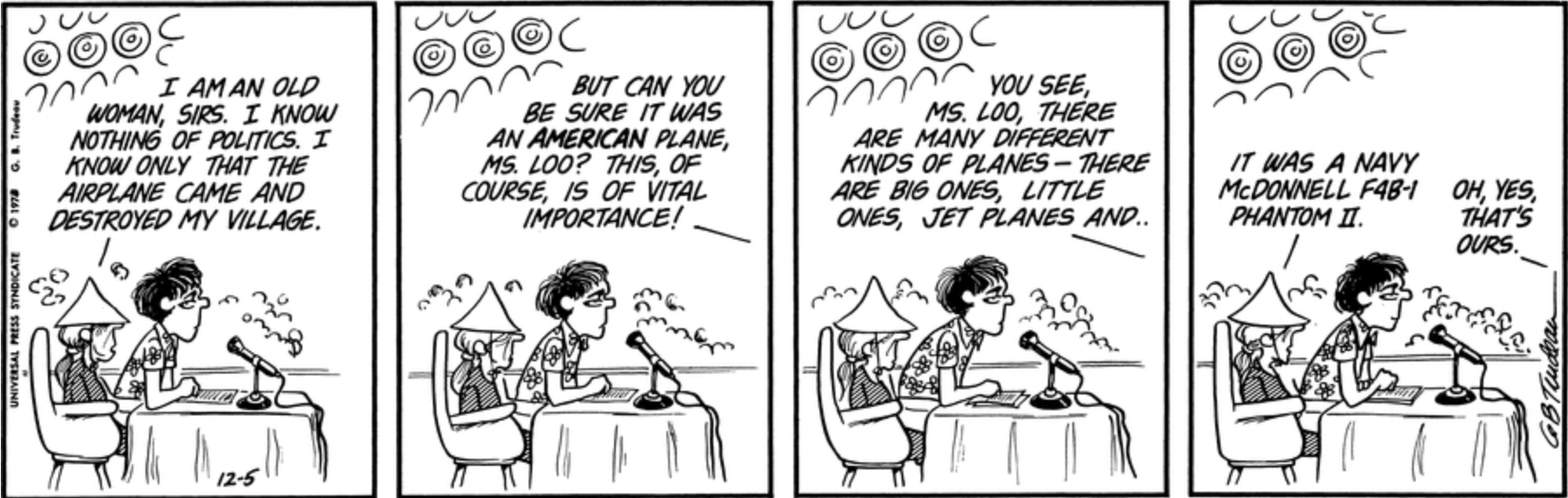 What if anything stood out for you there because for me it was the daughter's recognition of a novel type of munition flying over her head. Imagine being bombed so frequently that you come to know – even as a child – the different kinds of missiles sent to kill you by the sounds they make? By the size of the holes they leave behind. A sommelier's expertise in destruction. And what a bounty of varietals we have delivered to her and so many millions of others like her in our bloody history.