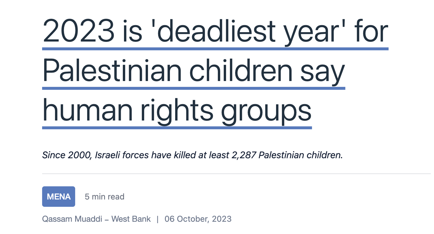 Not that that Palestinian children were particularly safe before the past year's increase in slaughter. Note the date of this report.