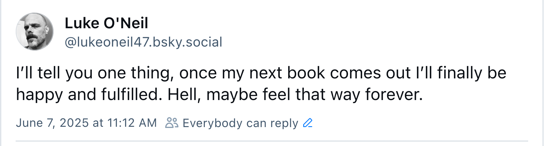 Reading Luke O'Neil's writing is like getting your ribs kicked in by a boot that you can't help but notice is beautiful—its stitching, the leatherwork, shining eyelets and lace hooks—all its craftsmanship catching your attention, even as it crunches your bones. We Had It Coming is O'Neil writing at the top of his game, raw emotion intertwined with poetic expression, offering a profound exploration of modern life’s complexities and woes in a style that refuses to let you look away. I gulped this book down. Never have I been so hungry for writing about life's—and the world's—numerous and ongoing catastrophes.