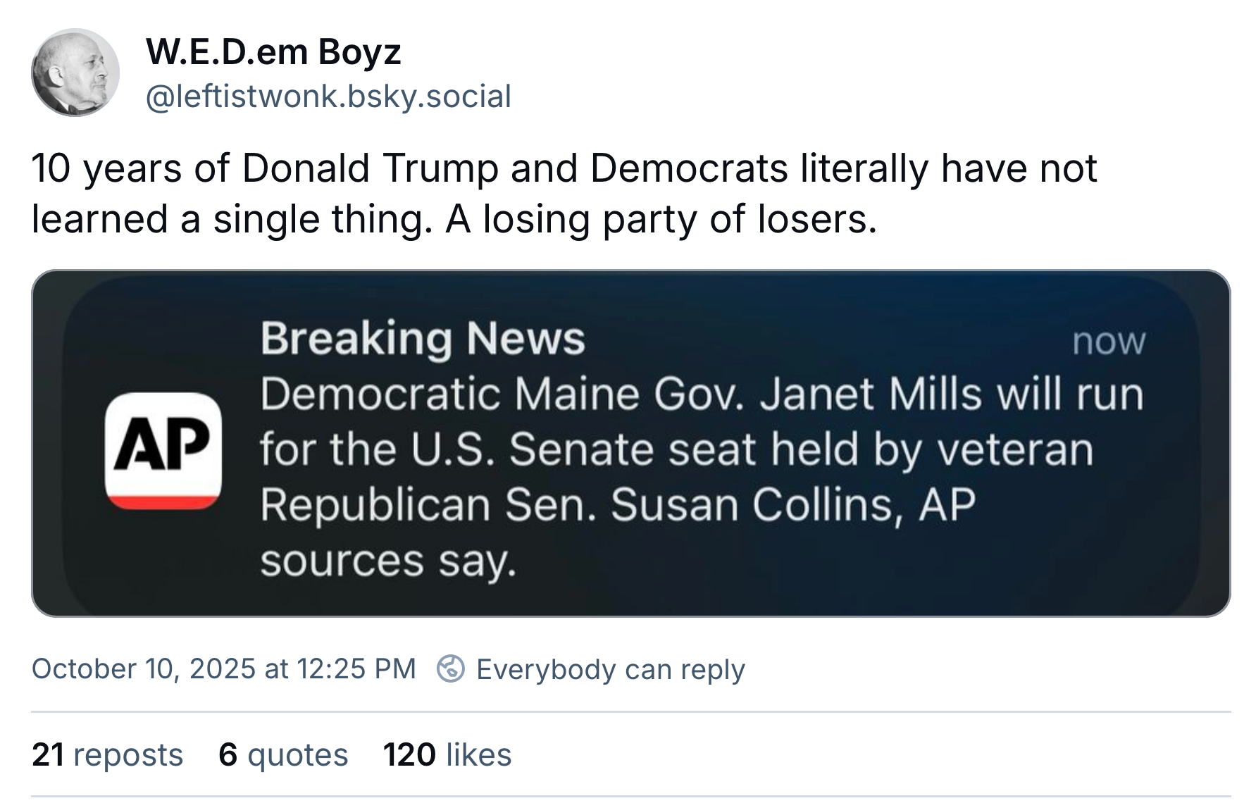 I'm not sure how he hasn't yet learned the lesson that that does not work by now but never learning a single lesson is one of the pillars of the Democratic Mind.