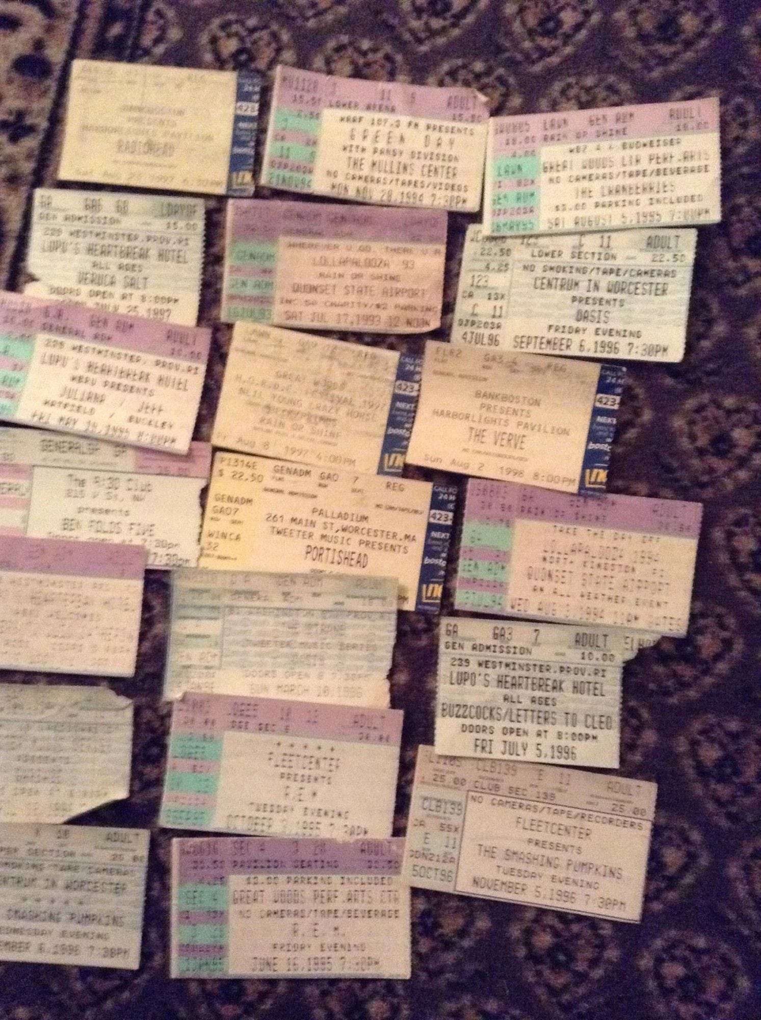 This picture is from a few Christmases ago but I had fun the other day looking back on it and trying to decide which of these concerts I'd like to transport myself back to right now. Which one are you taking? That Jeff Buckley/ Juliana Hatfield one is kind of calling out to me right now.