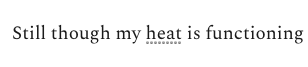 Still though my heat is functioning and monotony seems like a privilege at this point.