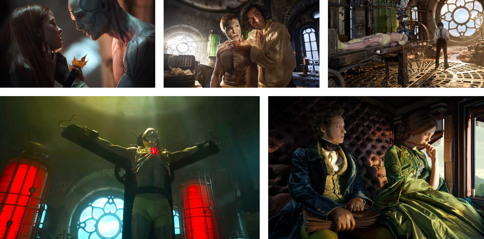 Carnality is everywhere in Guillermo del Toro’s 2025 Frankenstein. I use “carnality” here more for its associations with meat than with sex. I can’t remember another recent film that treats flesh with such overt, expressive sensuality. In one early scene, little Victor Frankenstein’s pregnant mother eats raw offal on the grounds that it’s good for the baby, and we cringe not only because we know this to be incorrect but because of the way the meat squelches between her teeth. Years later, Dr. Frankenstein combs a newly christened battlefield for corpses to build his famous creature. He slaps the dead with vigor, digs his fingers into their purpling thighs. His scalpel cutting through human tissue sounds uncannily like a steak knife slicing a buttery filet. This director demands that you love oozing, stinking, rotting life as much as he does. He knows you don’t know how, and he is going to spend the whole film showing you.