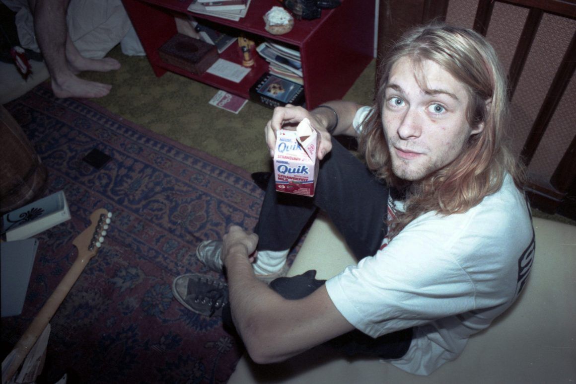 You’re talking about the one where he’s holding the strawberry Quik right? So they all brought in their camp pads and threw them all over the floor of our living room. Those pictures are in my living room. You can see my tarot deck in the background and some records and I think Krist’s feet. I guess I thought it was so funny that he would walk to the corner store and by this box of strawberry Quik. And now I know that he drank it for his stomach.