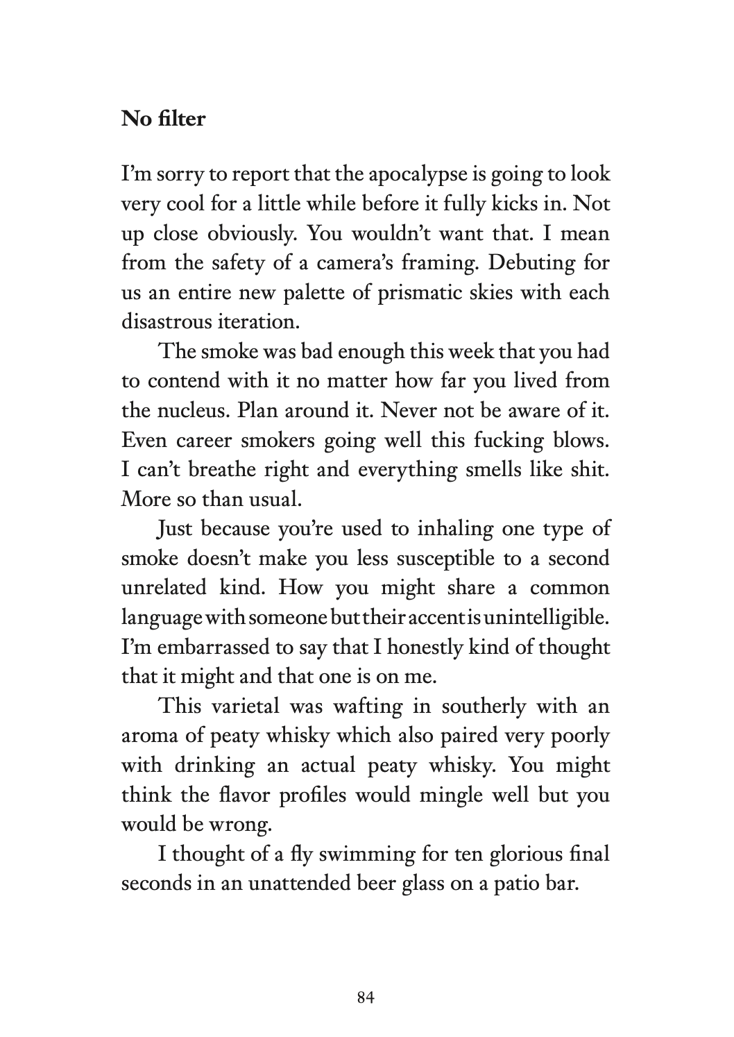 Did I share this one from my new book We Had It Coming – out in a month or so! – already? I don't remember. Who cares I suppose. It's also about wildfire smoke.
