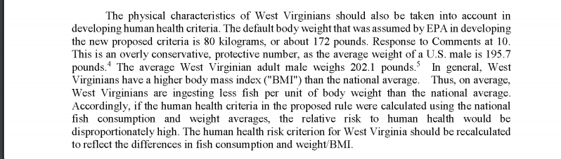 On top of that people who are heavier the WVMA argued wrongly can handle a bit more pollution in their diet and no I’m not kidding. You can read it all here beginning on page 51 but here are a few excerpts.