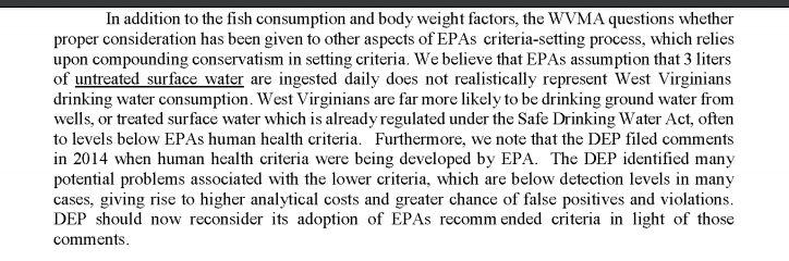 I saw that the WVMA argued that West Virginians were too fat and didn’t drink enough water so that in effect it was ok to have higher levels of contamination?