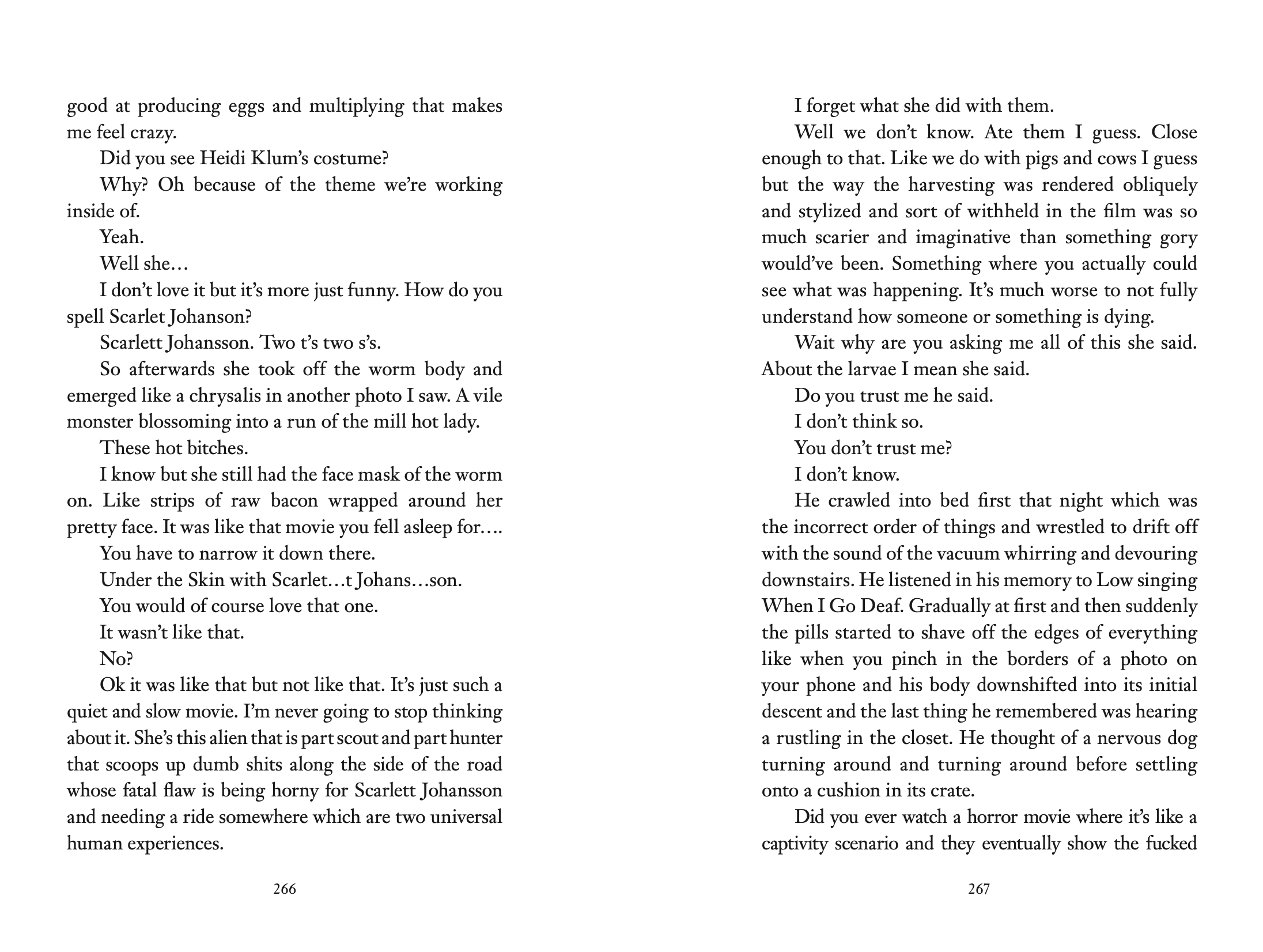 Hi it's Luke again. I've plugged this piece from A Creature Wanting Form a few times already but since we're talking about Under the Skin today it seemed relevant.