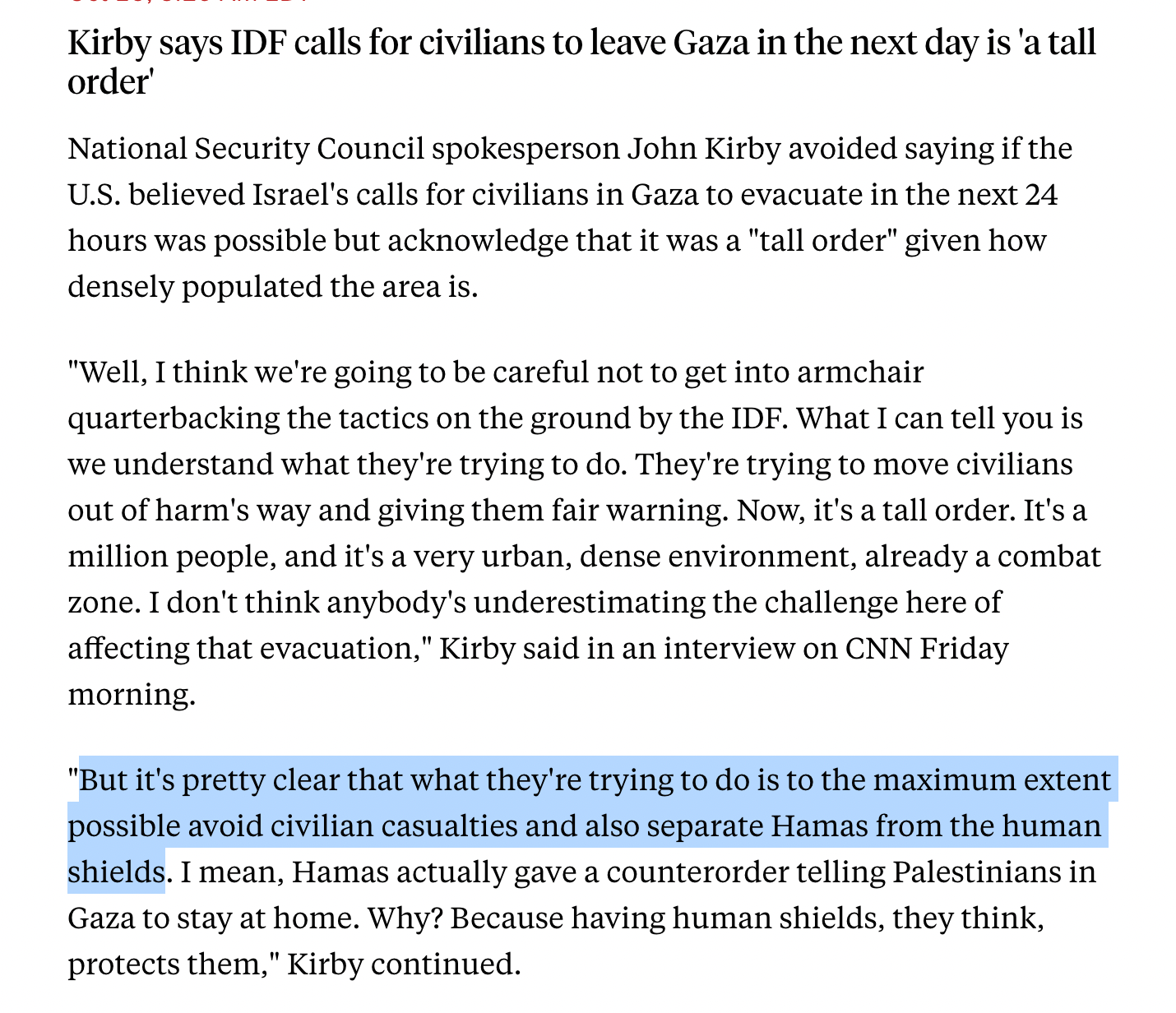 Meanwhile a million plus Palestinians are being told to leave their homes and go....somewhere.