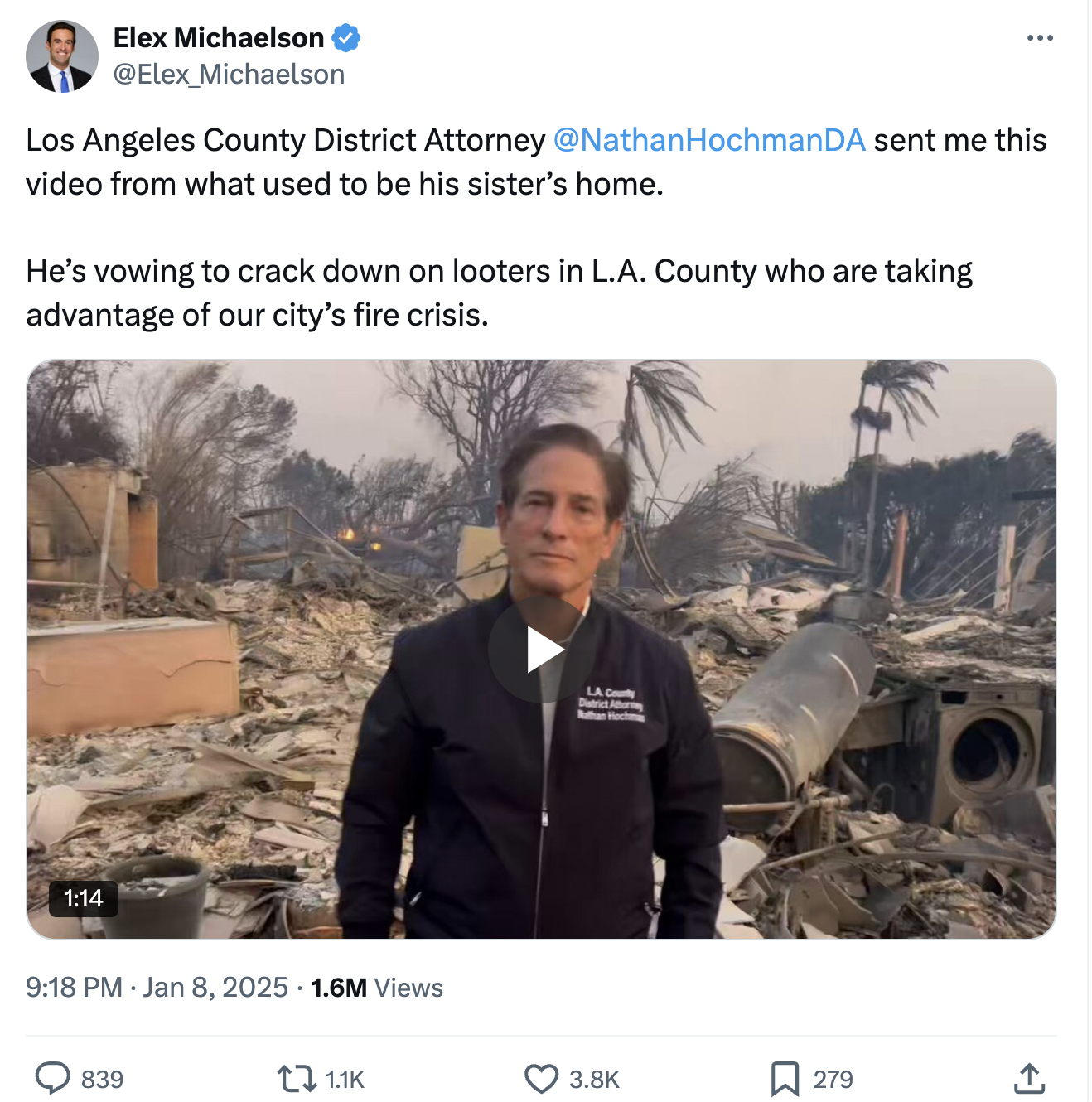 I was also sadly not surprised to see a number of LA officials going full Elite Panic-mode and coming out immediately to fearmonger about "looters."