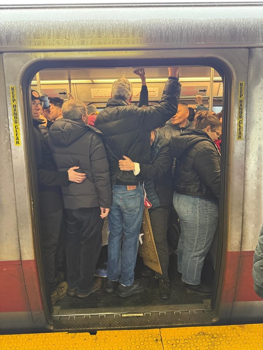 We drove into Cambridge and got on the T at Alewife the last stop on the Red Line heading inbound and I felt depressed about having to do that. Having to commute to a protest.